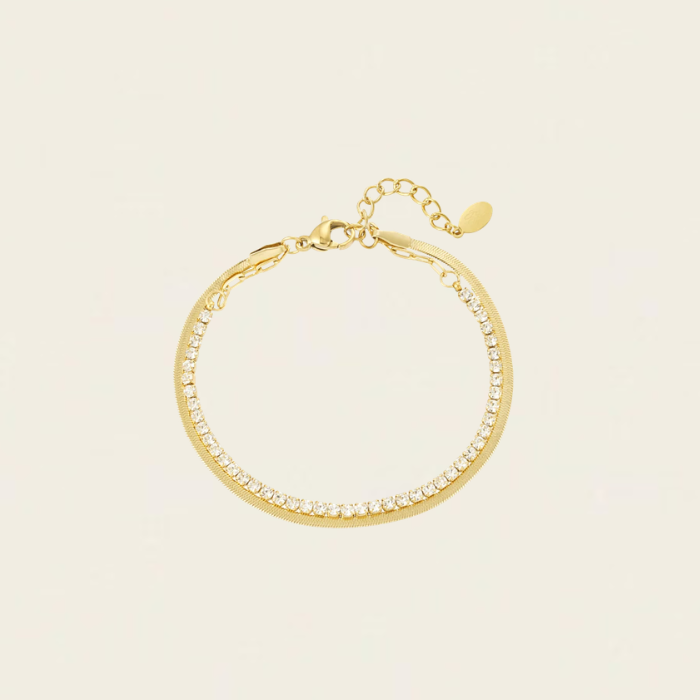 Deze armband is minimalistisch en fijntjes, hij voegt een touch van elegance toe aan elke outfit. Hij is waterdicht en verstelbaar, echt een musthave voor elke vrouw.