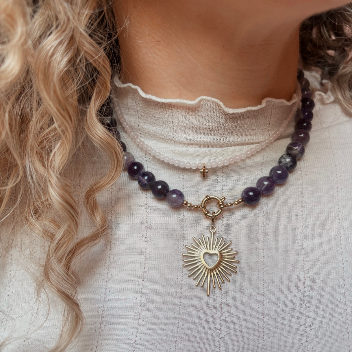 Amethist ketting premium met gouden sluiting