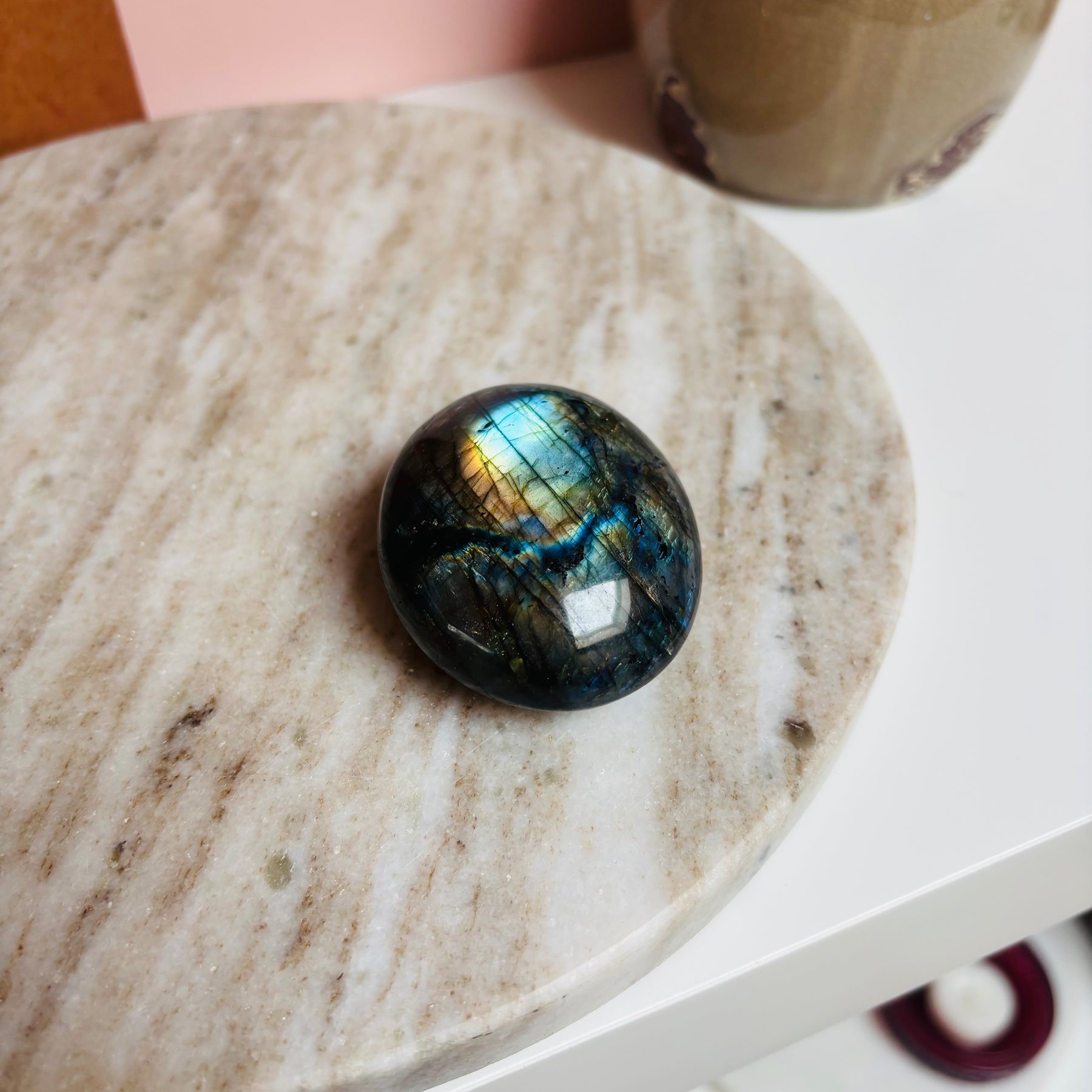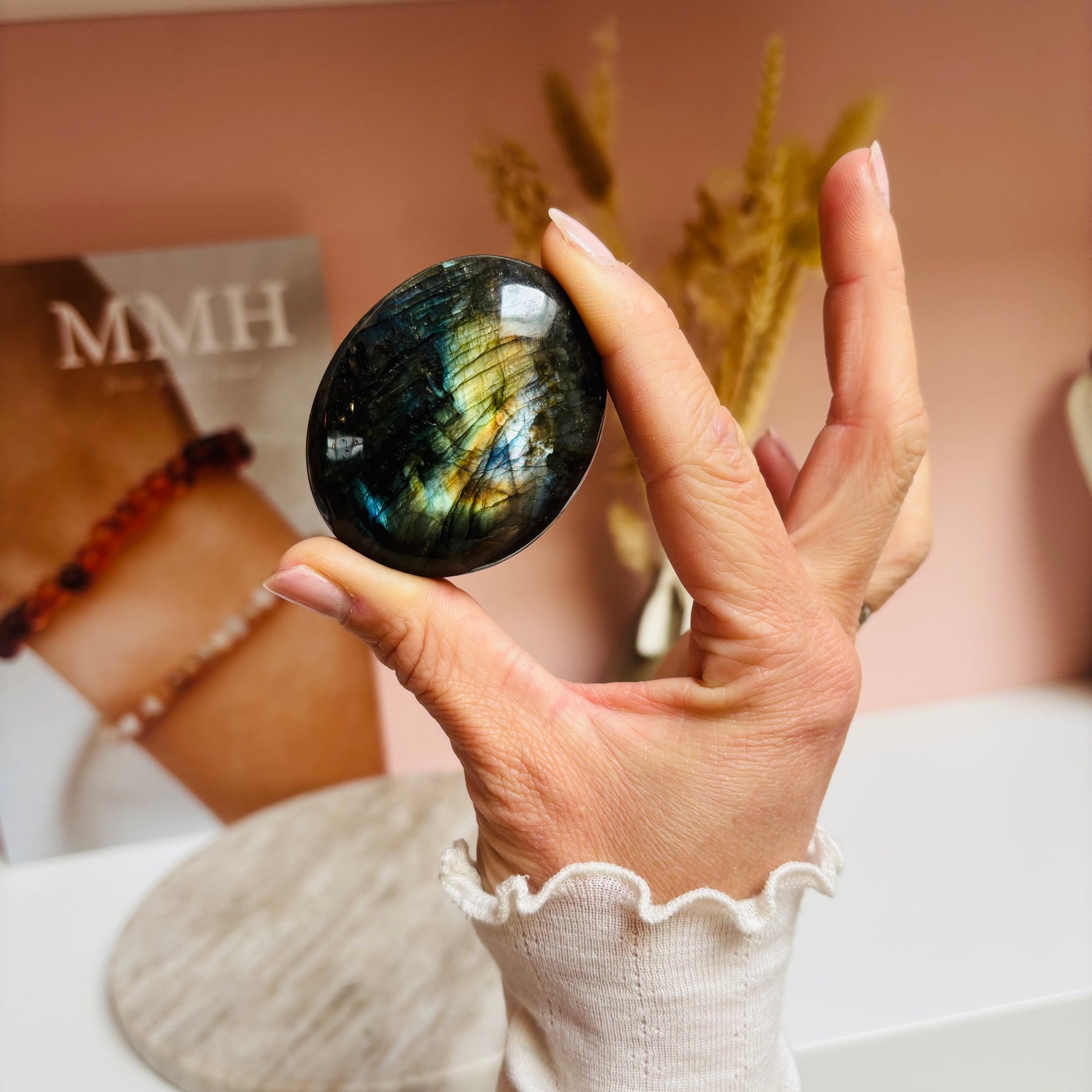 Labradoriet beschermt het eigen energieveld (aura) tegen negatieve invloeden uit de omgeving en mensen die energie bij je wegnemen. De steen vermindert angst en geeft kracht, (zelf)vertrouwen en doorzettingsvermogen. Stimuleert fantasie en creativiteit en helpt ideeën te ontwikkelen.