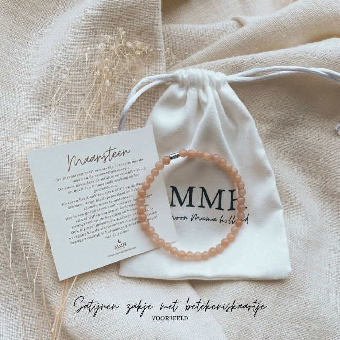 Materiaal: Edelsteen, oersterk elastiek en een sterling zilver 925 MMH logo